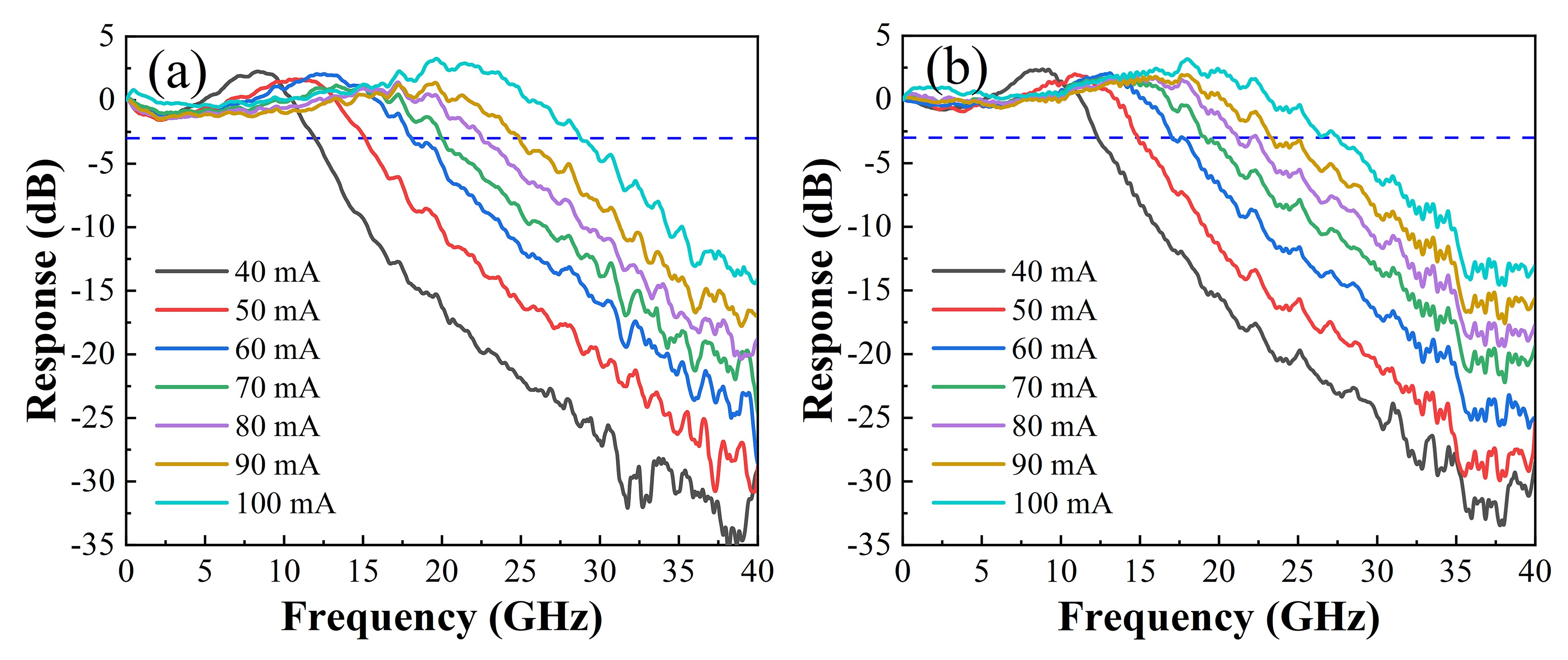图3. 小信号调制响应,(a) 20°C,(b) 40°C