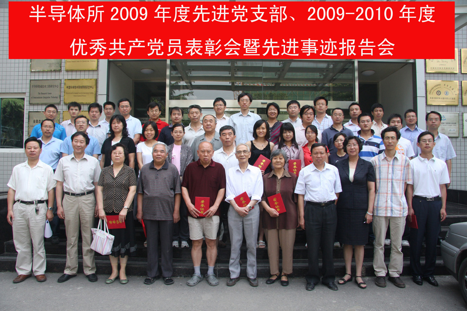 所长、党委委员李晋闽和党委书记、副所长陈树堂为荣获半导体所“2009年度先进党支部”的党支部书记、“2009-2010年度优秀共产党员”颁发了荣誉证书。