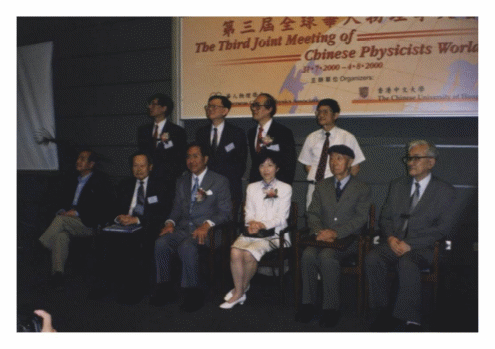2000年7月31日,李爱扶(左一)、黄昆(左二)、李政道(右二)、杨振宁(右一)出席在香港召开的第三届全球华人物理学大会