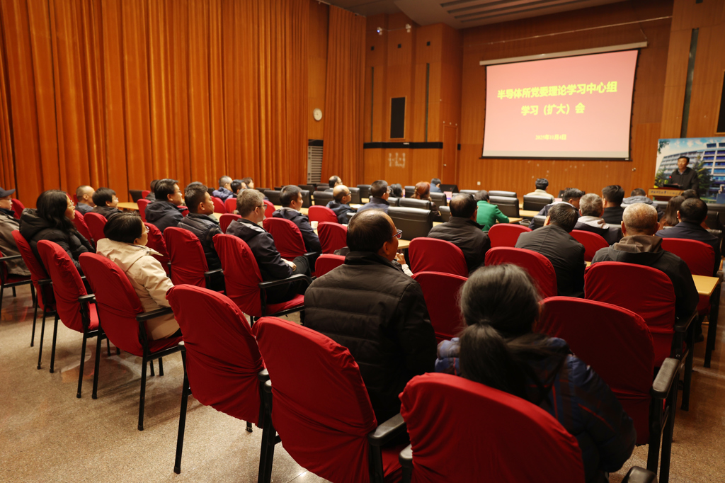 当天上午,半导体所还召开了党委理论学习中心组学习(扩大)会。会议由党委副书记王文武主持。党委班子成员所长谭平恒、副所长张韵、副所长薛春来以及党委委员、纪委委员、实验室正副主任、机关副处级以上领导干部、党(总)支部书记等40余人参加会议。